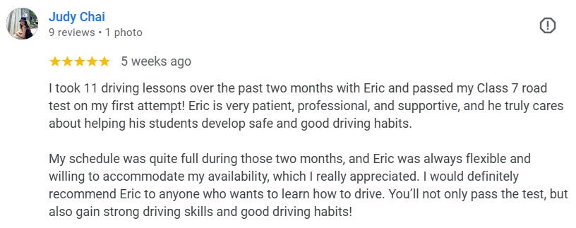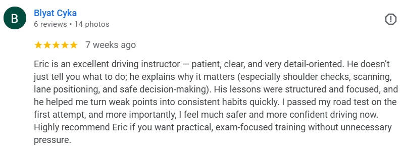 BC Class 5/7 Driving Lessons & Road Test Preparation
