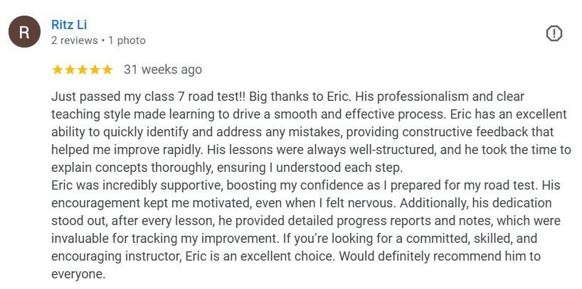 β’ BC Class 5/7 Driving Lessons & Road Test Preparation